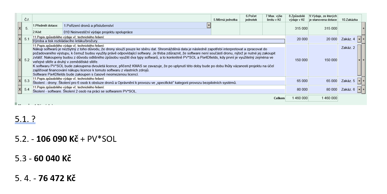 Přikládám přehled dosavadního čerpání v kódu 010, aby bylo jasné kolik peněz je možné použít na školení na PIX4DFIELDS.